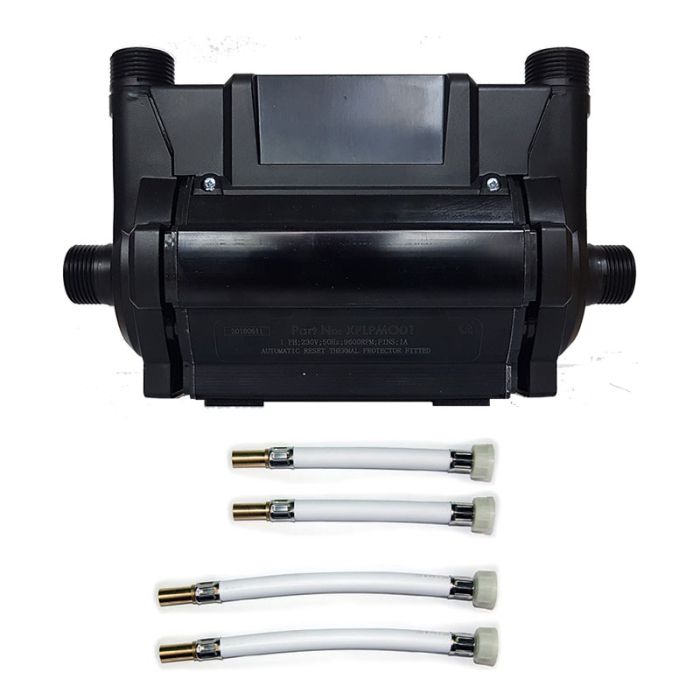 " As a replacement the pump was easy to connect; it ran smoothly and quietly delivering an impressive flow rate to the shower head. I'm very pleased with the result." " All worked well. Seems a good little pump & fitted, as said, in the place of the existing pump with no problem." "Does what it says on the description has replaced my old New Team perfectly."The Turboboost MK2 shower pump is a twin shower pump that delivers 1.5bar pressure. It is quiet, powerful and easy to install. The Turboboost MK2 omes with brass ended 15mm pump hoses for use with a compression fitting. It can be fitted to either 15mm or 22mm pipe work.